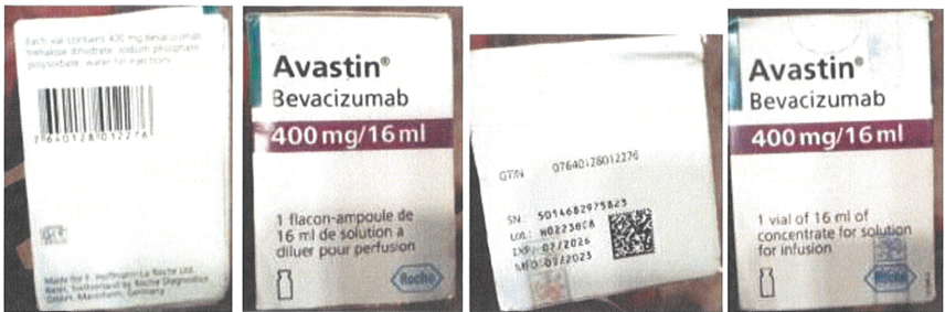 Avastin 400mg/16ml | Made for F. Hoffmann-La Roche Ltd, Basel, Switzerland, by Roche Diagnostics GmbH, Mannheim, Germany | H4239A70 | 03/2024 | 10/2026 |