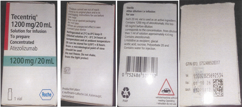 Tecentriq 1200mg/20ml | Production place : F. Hoffmann-La Roche Ltd, Kaiseraugst, Switzerland | B3071A12 | Not provided on pack | 01/10/2026 |